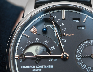 Sul fronte è la visualizzazione del calendario perpetuo. La data viene visualizzata con un datario puntatore attraverso un sub-quadrante a ore 3. Una mano ondulata rende facile leggere la data. Il mese e il giorno sono indicate da piccola apertura da 1 replica orologio e il display anno bisestile è solo a destra del sub-quadrante di data. Sotto la data si dispone di una sezione con un disco che mostra la i segni dello zodiaco, le stagioni, Equinox e solstizio.